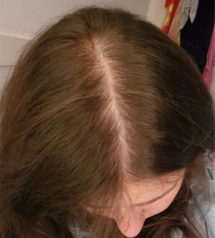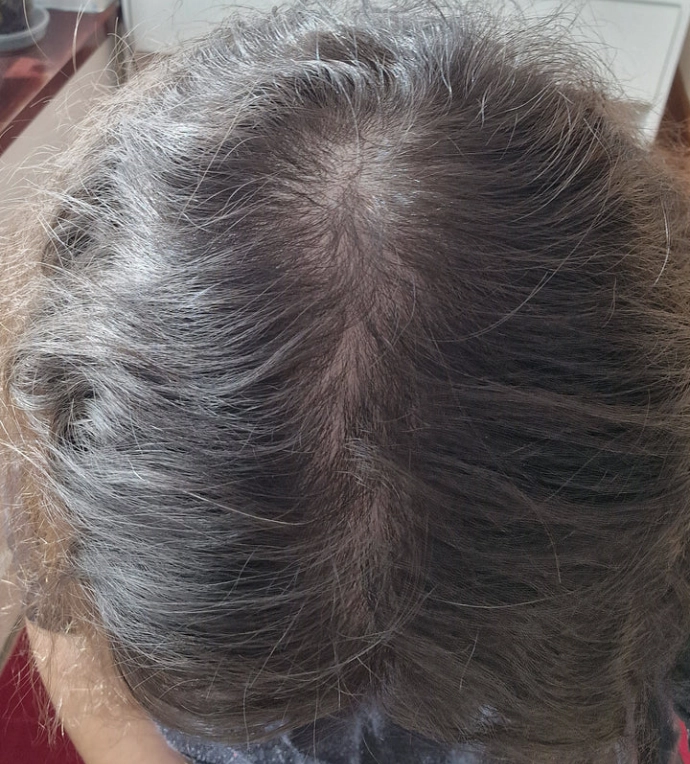"Scandinavian Biolabs products are unbelievable. I thought I would need a wig! The first picture shows my hair loss in September 2023. After starting your products, my hair improved dramatically. The last picture shows why I believe your products are a miracle! I've recommended them to many friends."